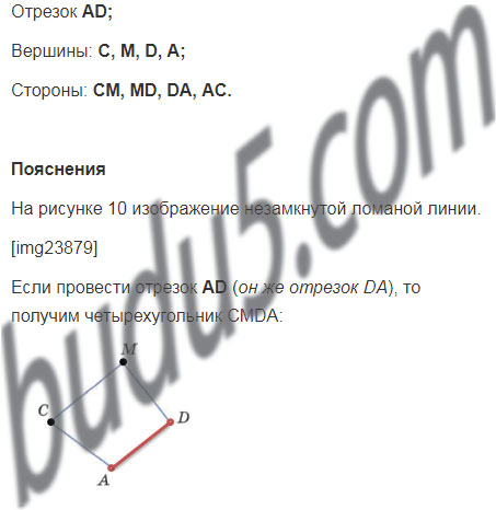 Какой отрезок надо провести на рисунке 10, чтобы получился четырехугольник? Назовите вершины и стороны полученного четырёхугольника.