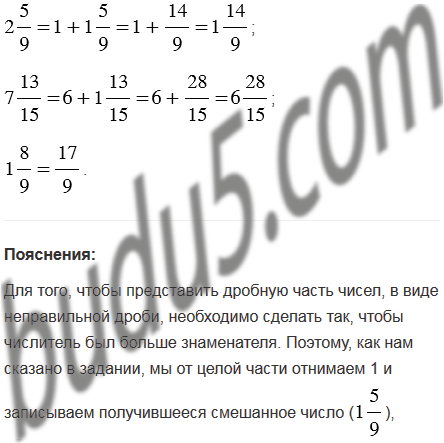 в виде неправильной дроби, уменьшив целую часть этих чисел на 1.