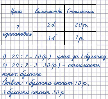3. Дополни условие, составь по задачам выражения и реши их. Катя купила 2 одинаковые булочки и заплатила за них