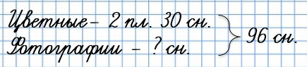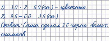 4. За время каникул Саша сделал 96 фотоснимков. Он отснял две цветные плёнки, по 30 снимков на каждой, и одну целую чёрно-белую плёнку. Сколько чёрно-белых снимков сделал Саша?