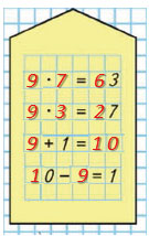 | 64 : 8 + 9 • 6 = 62 1) 64 : 8 = 8 2) 9 • 6 = 54 3) 8 + 54 = 62 | 32 : 4 • 5 = 40 1) 32 : 4 = 8 2) 8 • 5 = 40 |