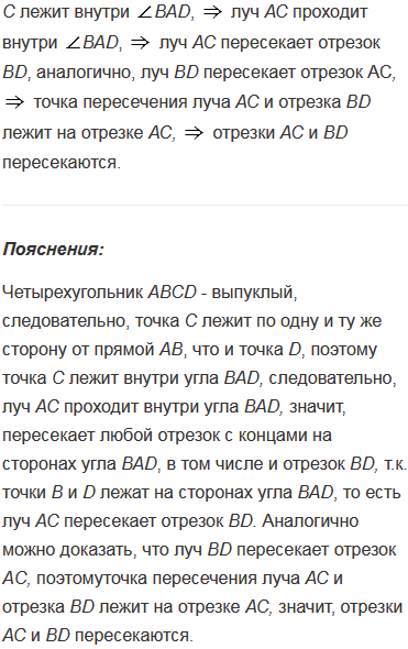 Докажите, что диагонали выпуклого четырехугольника пересекаются.