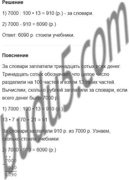 83. Для школьной библиотеки закупили словари и учебники на 7000 р. За словари заплатили тринадцать сотых всех денег. Сколько стоили учебники?