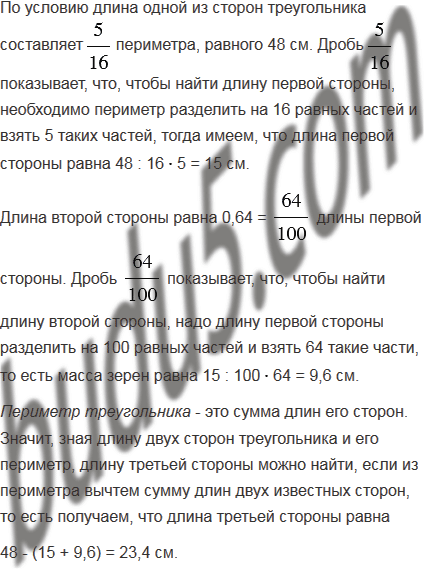 периметра, а длина второй - 0,64 длины первой стороны. Найдите стороны треугольника.