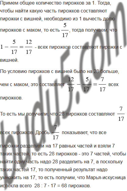от общего количества. Сколько всего пирожков испекла Марья-искусница, если пирожков с вишней было на 28 больше, чем с маком?