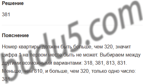 4. В трёхзначном номере квартиры использованы цифры: 1, 3, 8. Запиши номер квартиры, если он больше, чем 320, но меньше, чем 810.