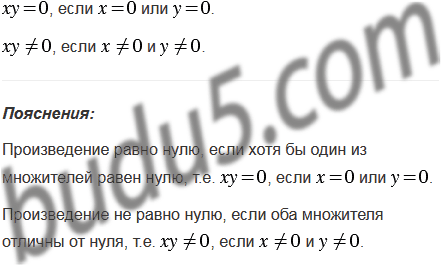 При каких значениях множителей произведение равно нулю? не равно нулю?