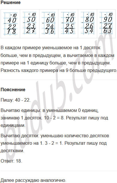 Повтори алгоритм письменного вычитания двузначных чисел.