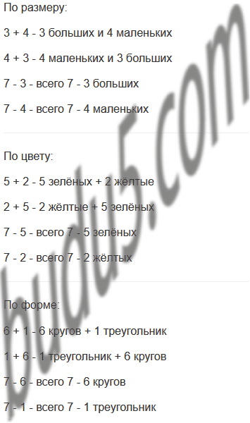 Задание № 5. Объясни по картине смысл выражений. На какие ещё группы можно разбить эти фигуры? Запиши для каждого разбиения 4 разных выражения и объясни их смысл.