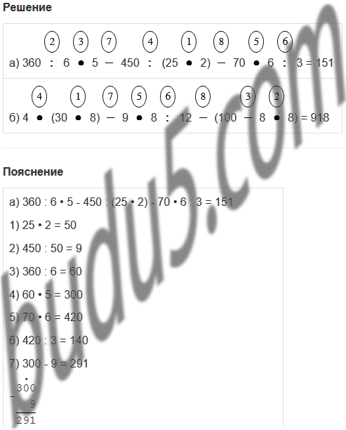 | а) 360 : 6 • 5 - 450 : (25 • 2) - 70 • 6 : 3 |
