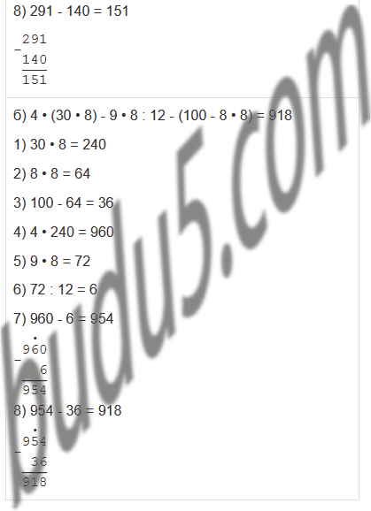 | б) 4 • (30 • 8) - 9 • 8 : 12 - (100 - 8 • 8) |