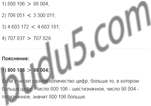 Сравните числа и запишите результат с помощью знака < или знака > :