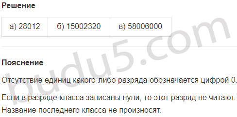| а) 28 тыс. 12 ед. | б) 15 млн. 2 тыс. 320 ед. | в) 58 млн. 6 тыс. |
