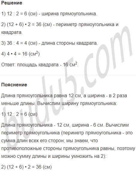 Задание № 8. Длина прямоугольника равна 12 см, а ширина - в 2 раза меньше длины. Найди площадь квадрата с тем же периметром, что и у данного прямоугольника.