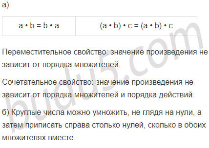 а) Допиши в тетради равенства, выражающие свойства умножения. Назови эти свойства и объясни их смысл.
