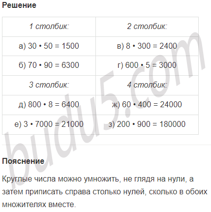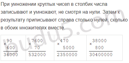 Задание № 4. Объясни, как выполнено умножение круглых чисел в столбик.