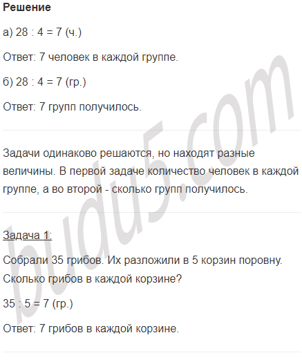 а) В классе 28 человек. Они разбились на 4 равные группы. Сколько человек в каждой группе?