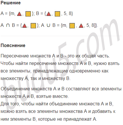 Задание № 10. На диаграмме отмечены элементы множеств А и В. Запиши с помощью фигурных скобок, из каких элементов состоят множества А, В, А