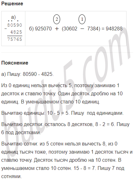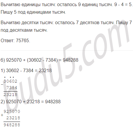 | а) 80590 - 4825 | б) 925070 + (30602 - 7384) |