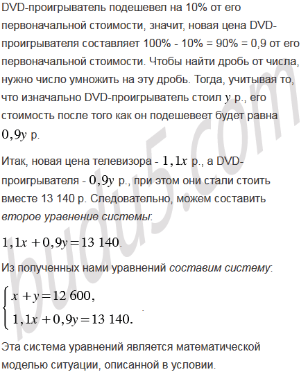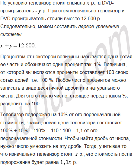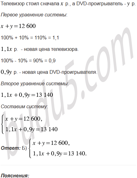 Телевизор и DVD-проигрыватель стоили вместе 12 600 р. После того как телевизор подорожал на 10%, а DVD-проигрыватель подешевел на 10%, они стали стоить вместе 13 140 р.