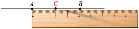 В первом случае отложим точку С вправо, для этого прикладываем линейку к прямой АВ так, что нулевое деление линейки совпадает с точкой А и ставим точку С напротив деления линейки 2 см, получаем АС = 2 см.