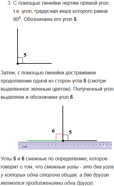 Начертите три угла: острый, прямой и тупой. Для каждого из них начертите смежный угол.