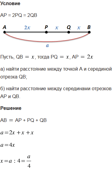 разделён точками Р и Q на три отрезка АР, PQ и QB так, что АР = 2PQ = 2QB. Найдите расстояние между: