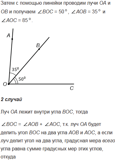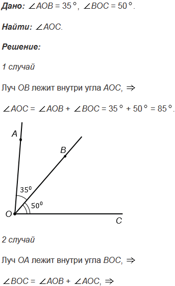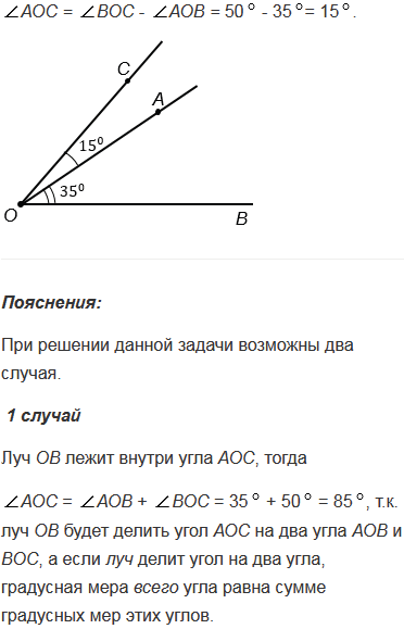 BOC = 50°. Найдите угол АОС. Для каждого из возможных случаев сделайте чертёж с помощью линейки и транспортира.