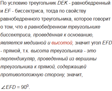 В равнобедренном треугольнике DEK с основанием DK = 16 см отрезок EF - биссектриса, DEF = 430. Найдите KF, DEK, EFD.