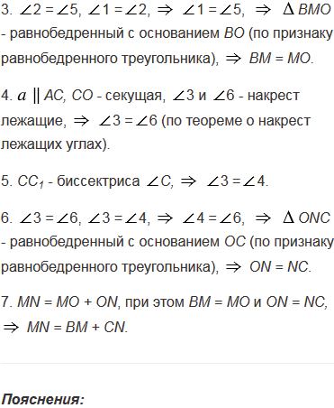 Через точку пересечения биссектрис ВВ1 и СС1 треугольника АВС проведена прямая, параллельная прямой ВС и пересекающая стороны АВ и АС соответственно в точках М и N. Докажите, что МN = BM + CN.
