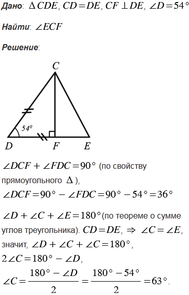 В равнобедренном треугольнике CDE с основанием CE проведена высота CF. Найдите