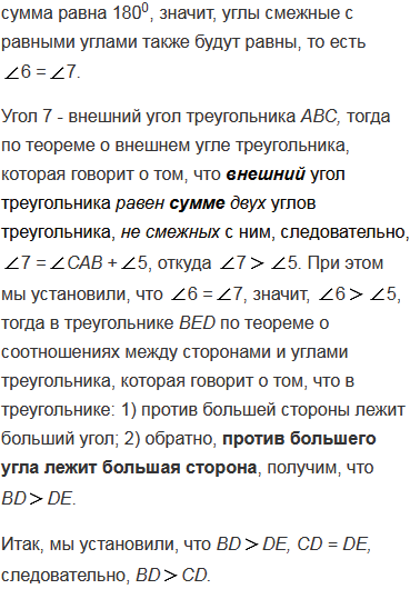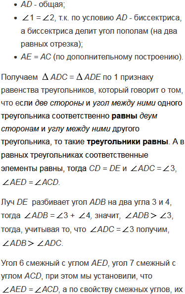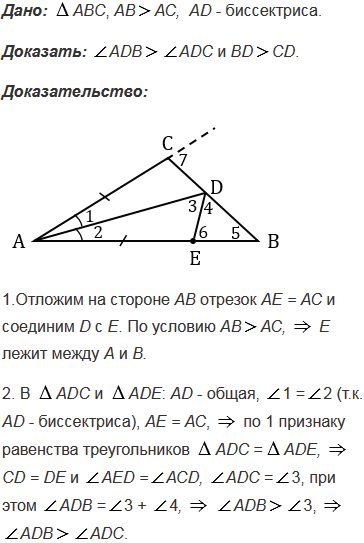 В треугольнике АВС сторона АВ больше стороны АС, отрезок АD - биссектриса. Докажите, что