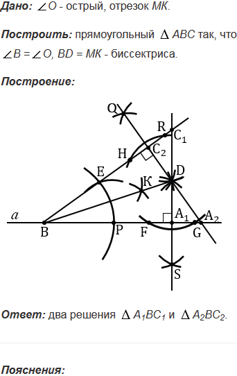 Постройте прямоугольный треугольник АВС, если даны острый угол В и биссектриса ВD.