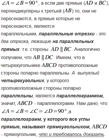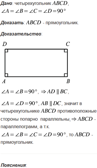 Докажите, что если в четырёхугольнике все углы прямые, то четырёхугольник - прямоугольник.