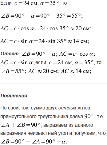 . Выразите второй острый угол и катеты через