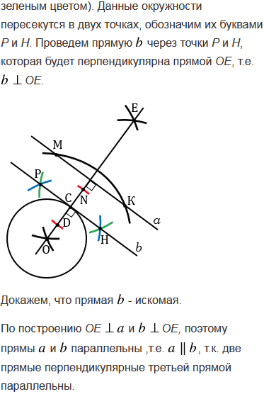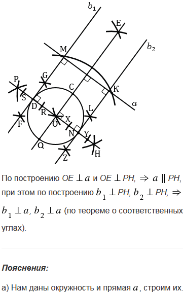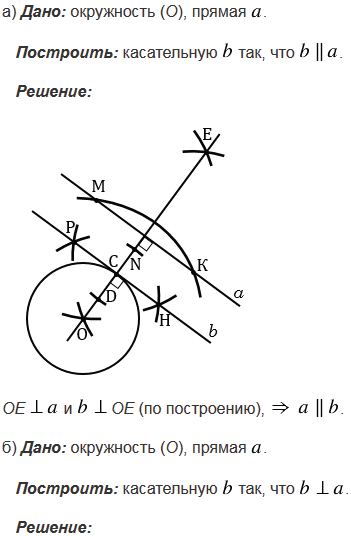 Постройте касательную у окружности с центром О: