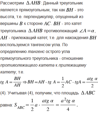 Найдите площадь равнобедренного треугольника с углом