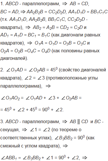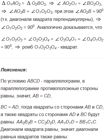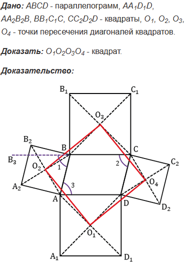 На сторонах параллелограмма вне его построены квадраты. Докажите, что точки пересечения диагоналей этих квадратов являются вершинами квадрата.