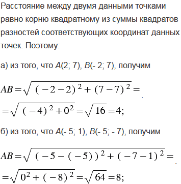а) А(2; 7), В(- 2; 7); б) А(- 5; 1), В(- 5; - 7); в) А(-3; 0), В(0; 4); г) А(0; 3), В(- 4; 0).