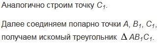 Постройте треугольник, который получается из данного треугольника АВС поворотом вокруг точки А на угол 1500 против часовой стрелки.