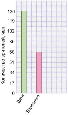 На цирковом представлении было 136 детей и 68 взрослых. Постройте столбчатую диаграмму (17 зрителей - 1 см).