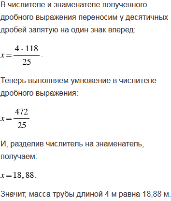 Труба длиной 2,5 м имеет массу 11,8 кг. Найдите массу такой же трубы длиной 4 м.