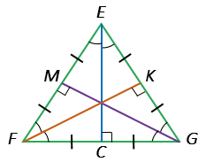 Если треугольник равносторонний, то данные теоремы справедливы для медиан, биссектрис и высот, проведенных к каждой из сторон треугольника.